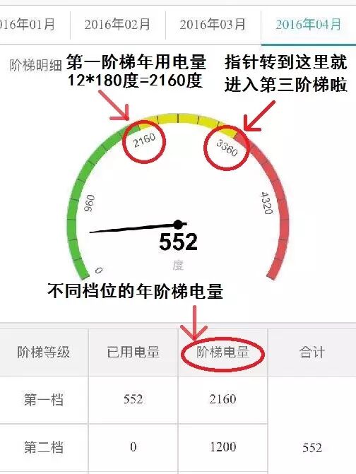 用电情况中的阶梯明细展现的是累积电量哦,电费采取年度清算的方式,未达到分档标准跨年不结转。